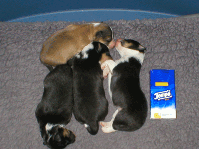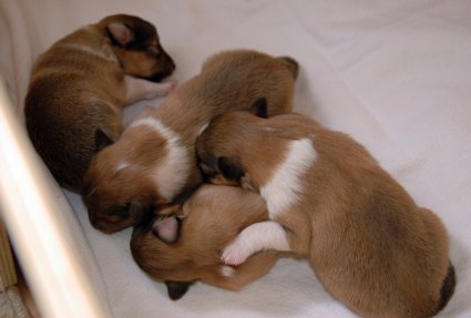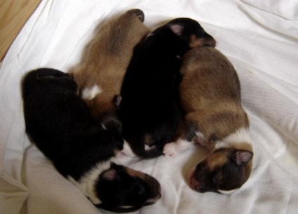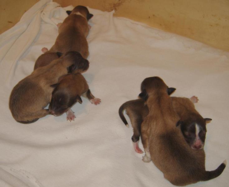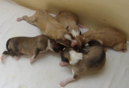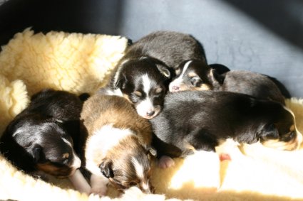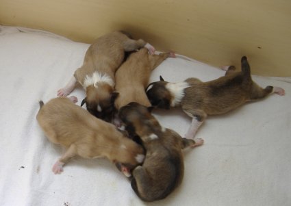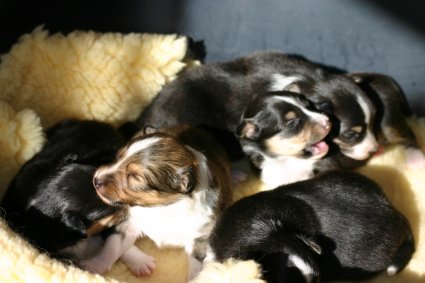 4 Rüden zobel-weiß, 1 Hündin zobel-weiß,1 Hündin tricolour sind geboren!
