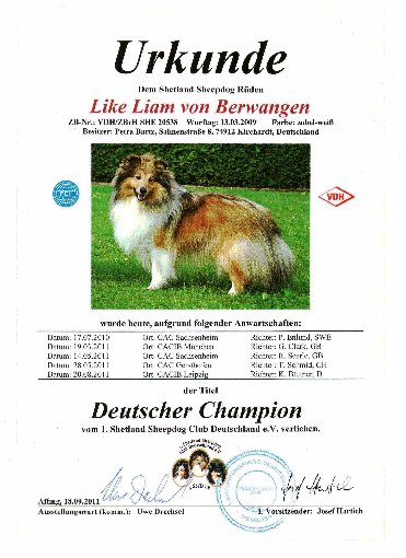 | 14.05.2011 | CAC Sachsenheim | Offene Klasse | Mr. Robin Searle, GB | V1 CAC, BOB | 109 |