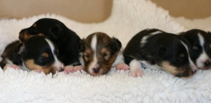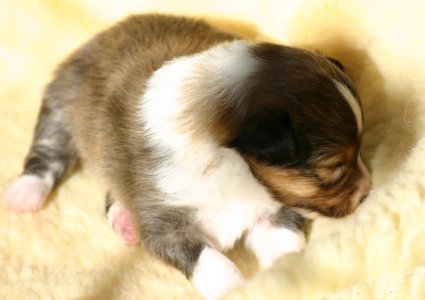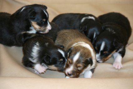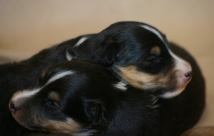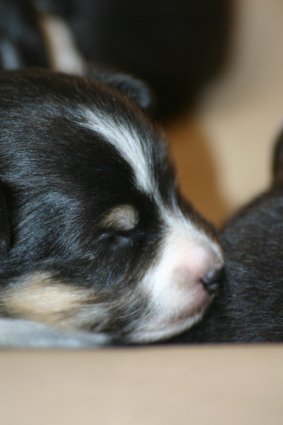 Zum Ende der zweiten Lebenswoche öffnen sich die Augen der Welpen. In der zweiten Lebenswoche beschränken sich die Aktivitäten auf Trinken und Schlafen