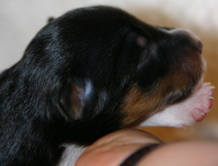 Die Welpen können noch nicht hören und sehen, sie können schon riechen und fühlen. Instinktiv saugen sie an den Zitzen der Mutter. |