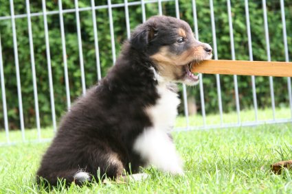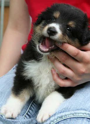| Jetzt mit 5 Wochen unternehmen unsere Welpen schon kleine Ausflüge und erfreuen uns mit ihren lustigen Streichen. Das Welpenzimmer sowie der Welpenauslauf ist bereits "zu klein". Sie wollen die Welt erkunden. |