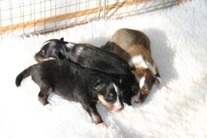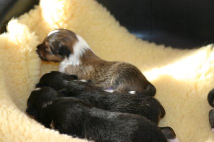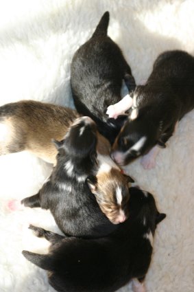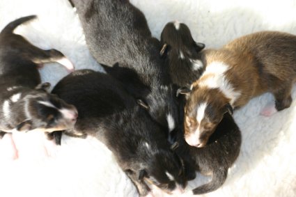 Die Welpen können noch nicht hören und sehen, sie können jedoch schon riechen und fühlen und saugen instinktiv an den Zitzen der Mutter.