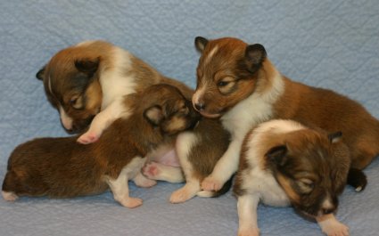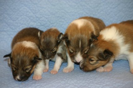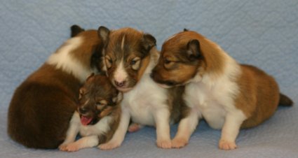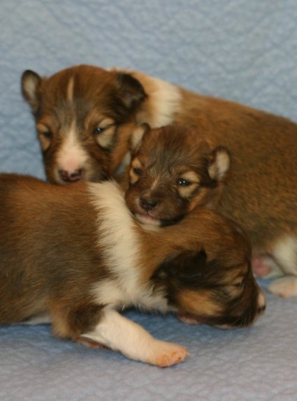Unsere Welpen sind jetzt 3 Wochen alt, sie laufen schon eifrig, allerdings noch etwas holprig, im ganzen Zimmer umher. Ihre Hauptnahrung ist aber immer noch die Muttermilch. Erst jetzt beginnt der Welpe, seine Umgebung mit allen Sinnen wahrzunehmen. Die Augen sind nun geöffnet, der Welpe nimmt jetzt auch akustische Reize wahr. Der "aufrechte Gang" wird geübt, ebenfalls die Lautäußerungen bis hin zum Bellen und sie haben bereits Ihre Namen! |
