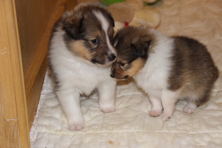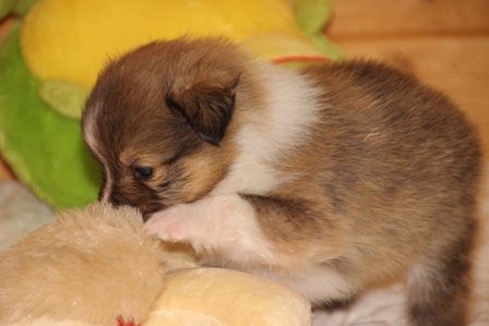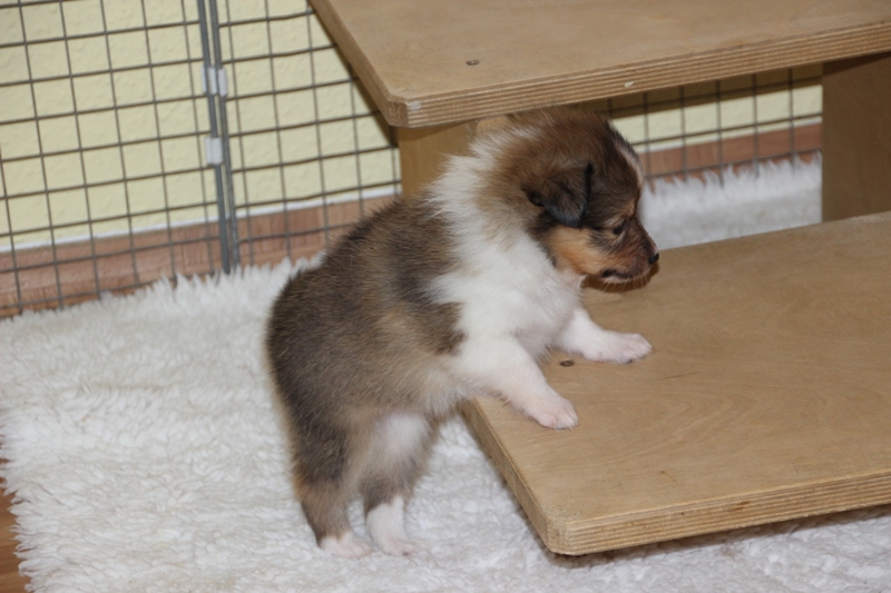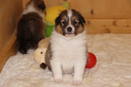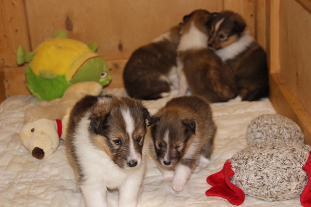 Unsere Welpen sind nun 4 Wochen alt. Wir befinden uns nun bereits in der Prägungsphase. Sie spielen und schlafen viel. Im Alter von 4 Wochen erhalten Sie bereits Frischfleisch & Pansen sowie Brei & eingeweichte Hundenahrung. |